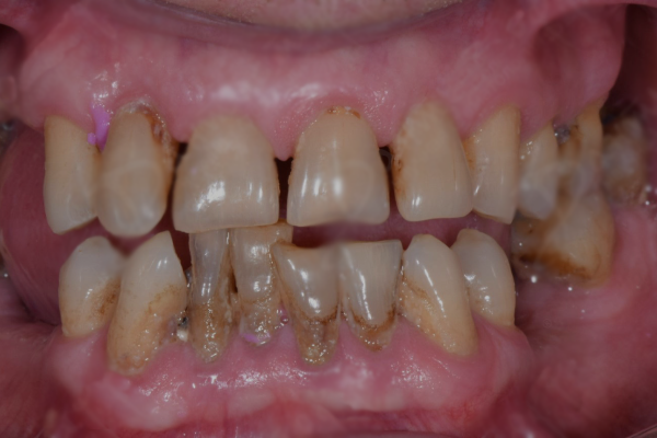 Лечение: Проведено удаление всех зубов, редукция костной ткани, установили импланты по протоколу «все-на-4» на верхней и нижней челюсти.